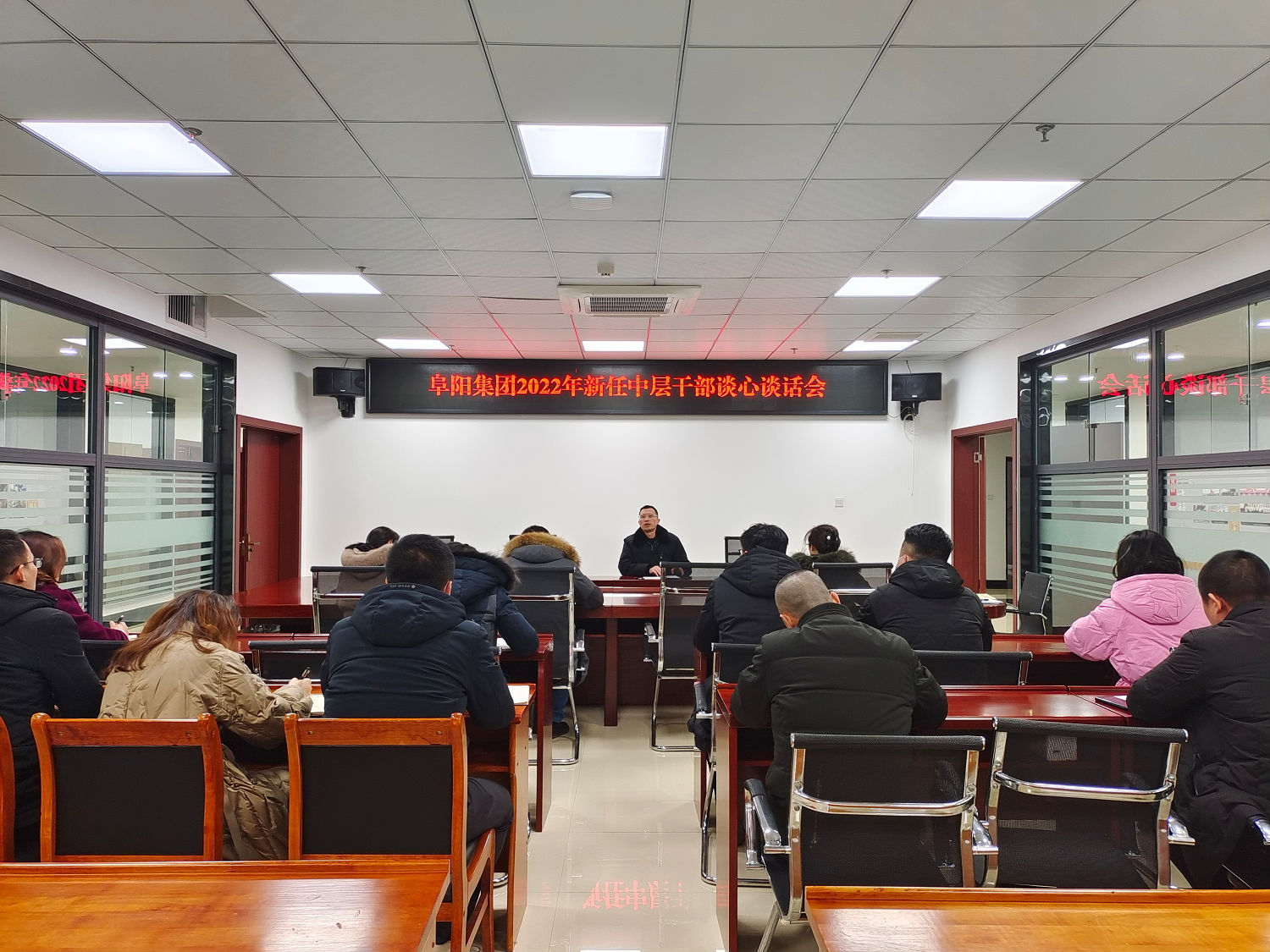 2022 年 2 月 9 日, 阜陽集團公司黨委副書記、 紀委書記 聶仕華對新任中層干部開展任前集中廉潔談話。