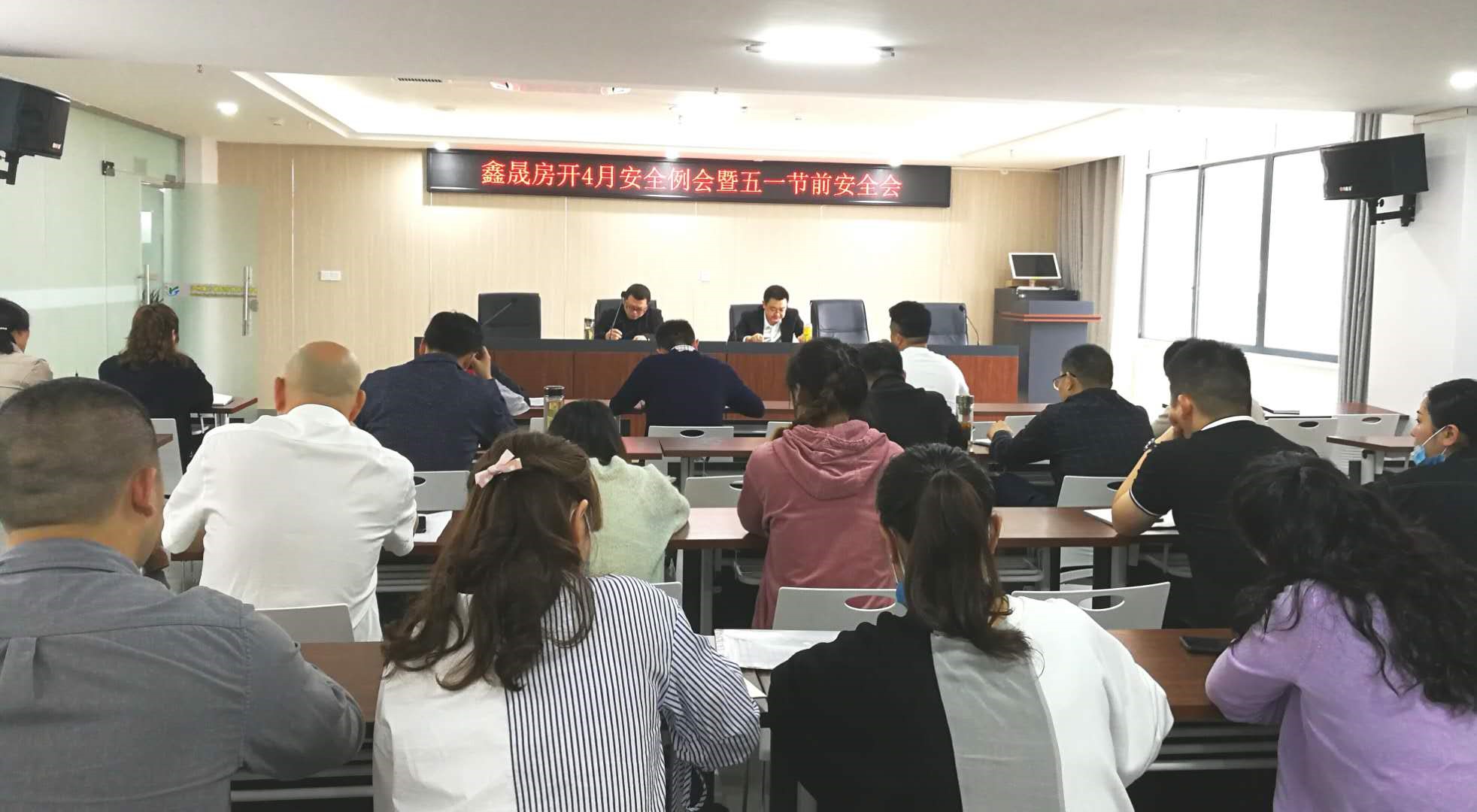 2020年4月30日,瀘州鑫晟房地產(chǎn)開發(fā)有限公司組織全體職工召開勞動節(jié)節(jié)前工作會。