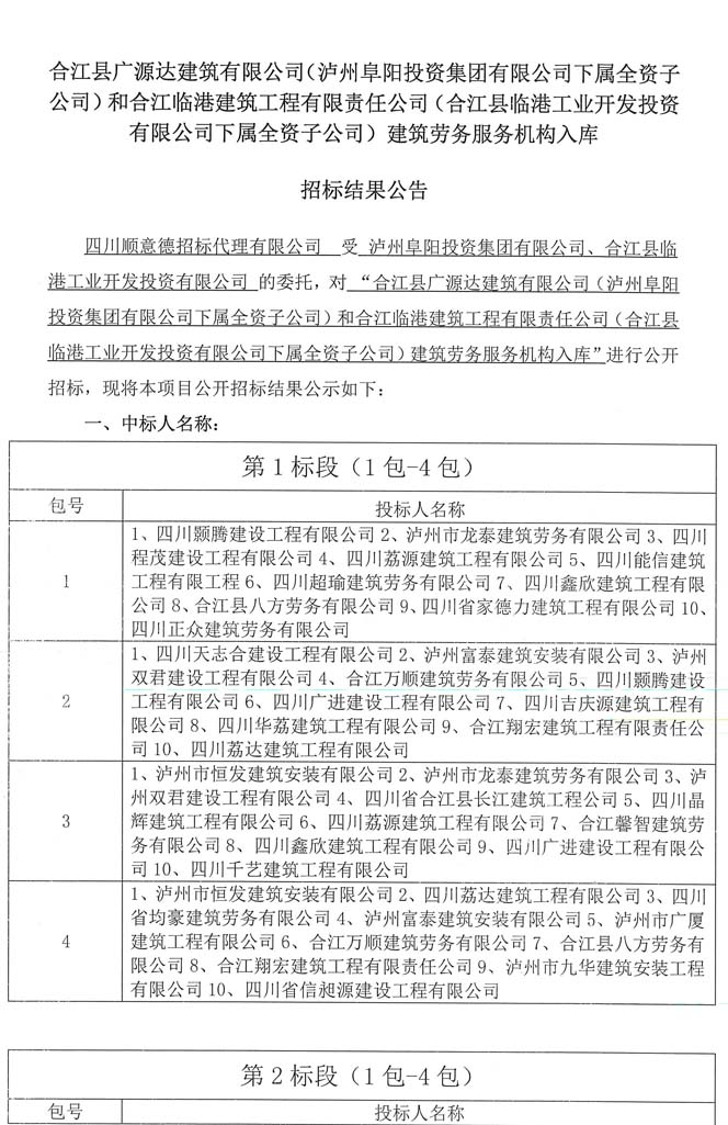 公告:建筑勞務(wù)服務(wù)機(jī)構(gòu)入庫招標(biāo)結(jié)果公告