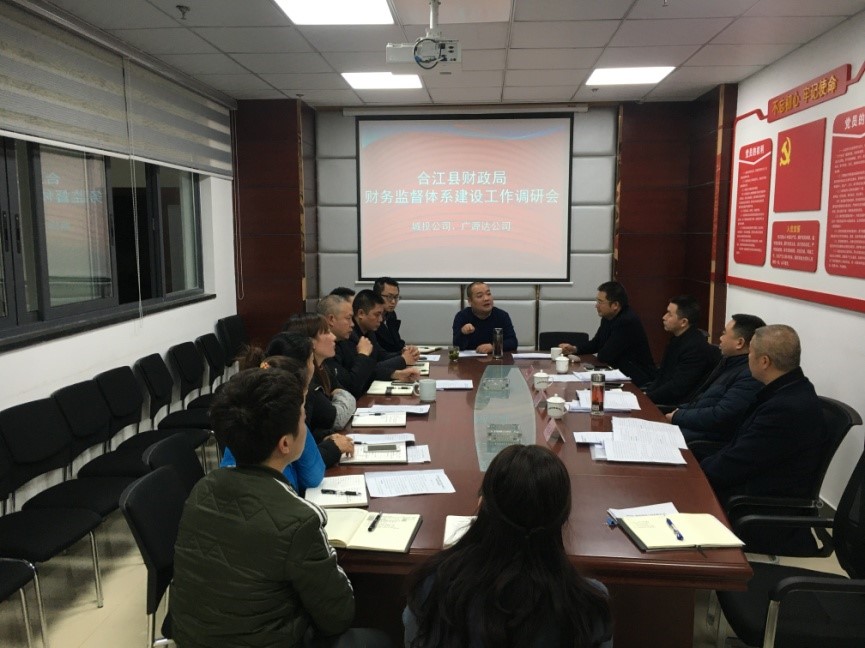 2019年11月21日,合江縣財政局黨組成員、財監(jiān)局局長楊向前帶隊對城投公司、廣源達(dá)公司開展財務(wù)監(jiān)督體系建設(shè)工作調(diào)研。公司主要領(lǐng)導(dǎo)、監(jiān)事會主席、各部門負(fù)責(zé)人、財務(wù)人員等參會。