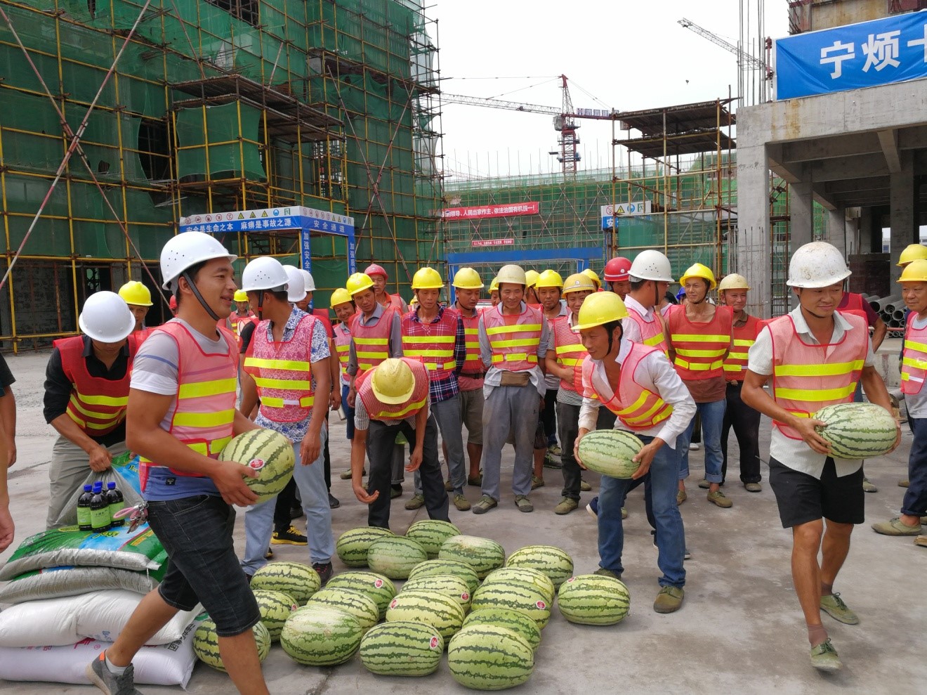 2019年8月5日下午,縣總工會(huì)會(huì)同城投公司、鑫晟公司、廣源達(dá)公司到鑫晟學(xué)府項(xiàng)目開展送“清涼”活動(dòng)??h工會(huì)領(lǐng)導(dǎo)一行對(duì)建筑工人表示慰問,并為他們送上藿香正氣液、風(fēng)油精、西瓜、綠豆、白糖等降暑防暑物品。