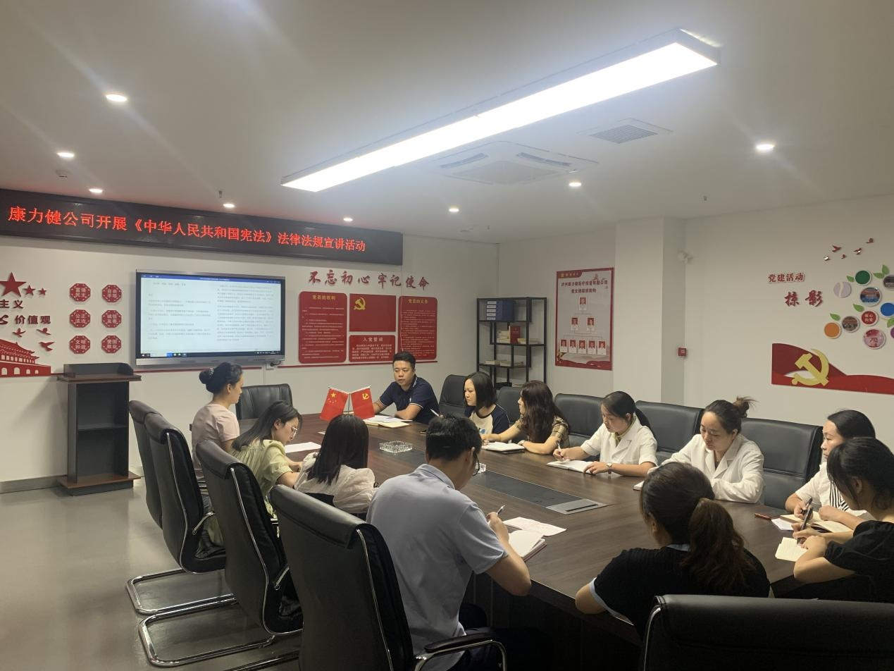 2022 年 8 月 23 日 , 康力健公司組織開(kāi)展 《 中 華 人 民 共 和國(guó)憲法》 法律法規(guī)宣講活動(dòng), 由康力健綜合部部長(zhǎng)賀佳領(lǐng)學(xué)。